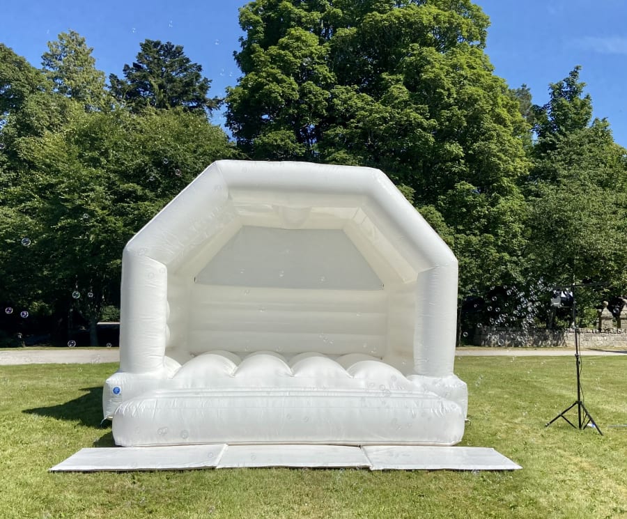 Check out our cool new white 15 x 15 ft wedding bouncy castle. Celebrate your up coming wedding in style with this white bouncy castle!