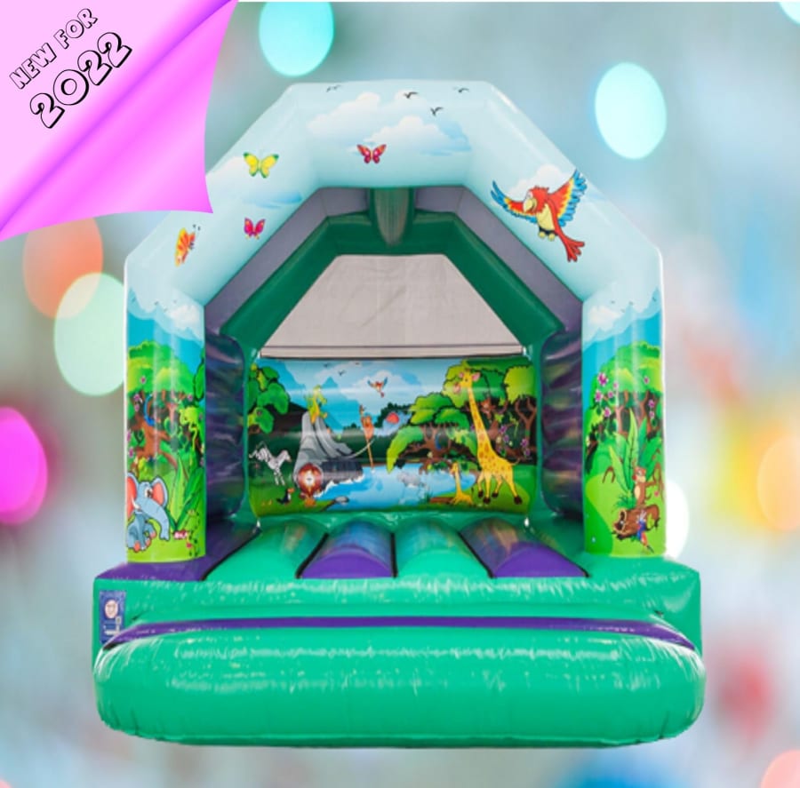 Check out our cool new Jungle themed 16 x 12ft castle. Celebrate your up coming event in style with this brightly coloured party castle!