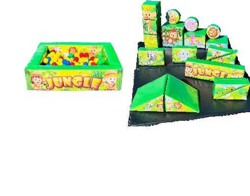 Our 18 piece JUNGLE theme soft play with 2 mats AND matching ball pool