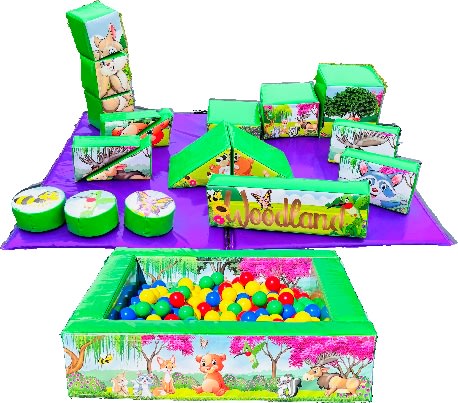 Our 18 piece woodland theme soft play with 2 mats AND matching ball pool