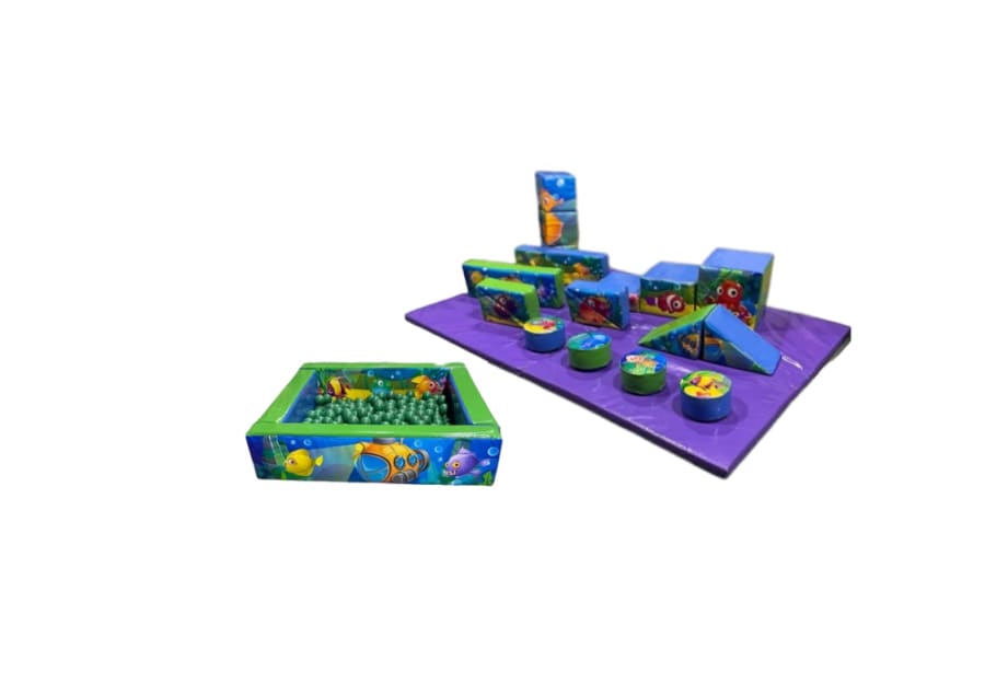 Our 18 piece Ocean theme soft play with 2 mats AND matching ball pool