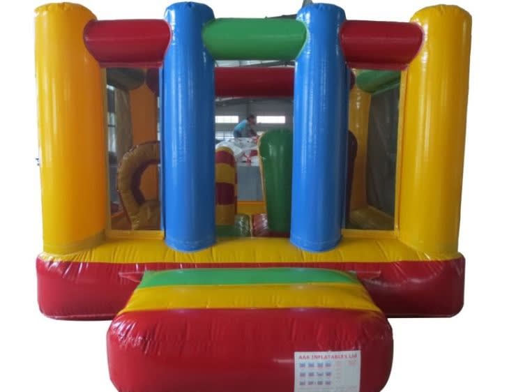 Our Rainbow castle has an open top and netted sides and is suitable for children under 1.2m tall. The netted sides give parents an all round view of activities taking place in the castle. Activities inside include biff and bash posts and a climb through hoop.