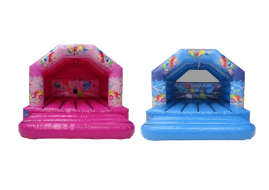 Bouncy castle hire Pink & Blue disco package in Aberdeen & Shire. Bright, fun and built for celebration. Two castles: one pink and one blue. Both come with integrated disco lights to create an instant party mood. One sound system is provided to power the music and lights (one sound system for both castles). Perfect for birthday parties, school fairs, family events and community gatherings. Indoors or outdoors on grass — we adapt to your space. đĒŠđ